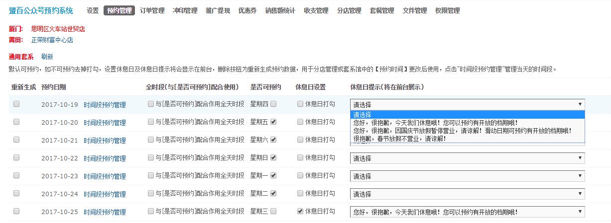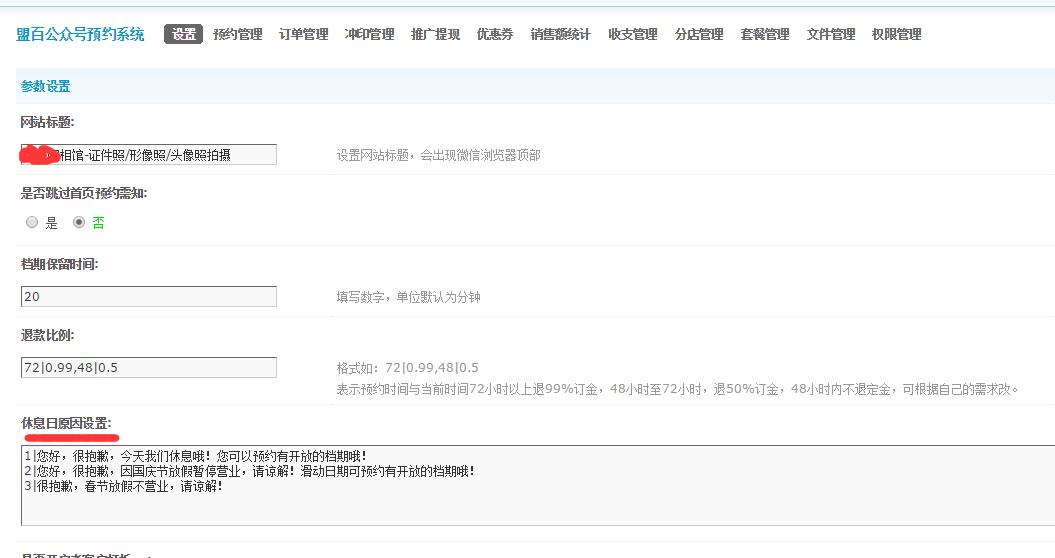微信公眾號(hào)預(yù)約微信支付系統(tǒng)優(yōu)化了休息日設(shè)置
